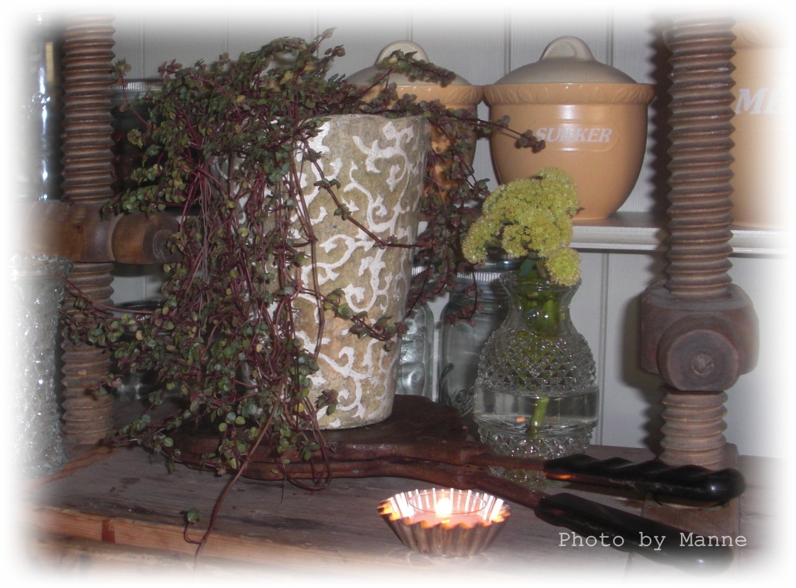 Hallo!!! Savnet deg!!! Da jeg så det første bildet, tenkte jeg søren også!!! sånn vil jeg ha!! som hylle, også så jeg at Godslageret også tenkte det samme:DDDDD Jeg må ut å lete:DDD Godt å høre at dere har hatt en fin ferie:DDD Vi sitter på campen (les: JEG sitter på campen, og Gubben er over alle hauer) og nyter livet best vi kan!!! klemz grethe